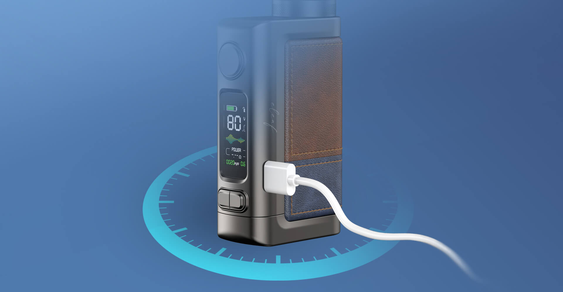 - OLED displej: Zobrazuje stav nabití gripu, odpor atomizeru, nastavený výkon, napětí a teplotu