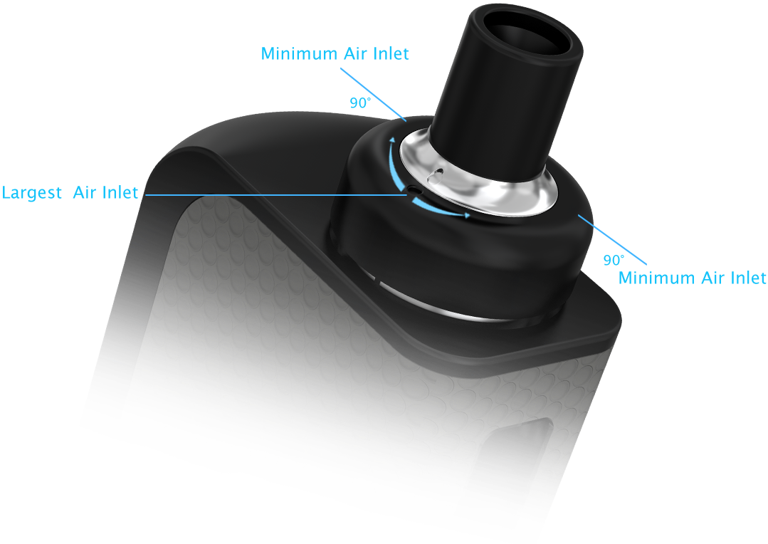 Otáčením kroužku proudění vzduchu na horním víčku ve směru nebo proti směru hodinových ručiček upravte přívod vzduchu. Přívod vzduchu bude největší, když se obě znamení shodují. Otočte jej o 90 stupňů doleva nebo doprava dosáhnete minimálního přívodu vzduchu.