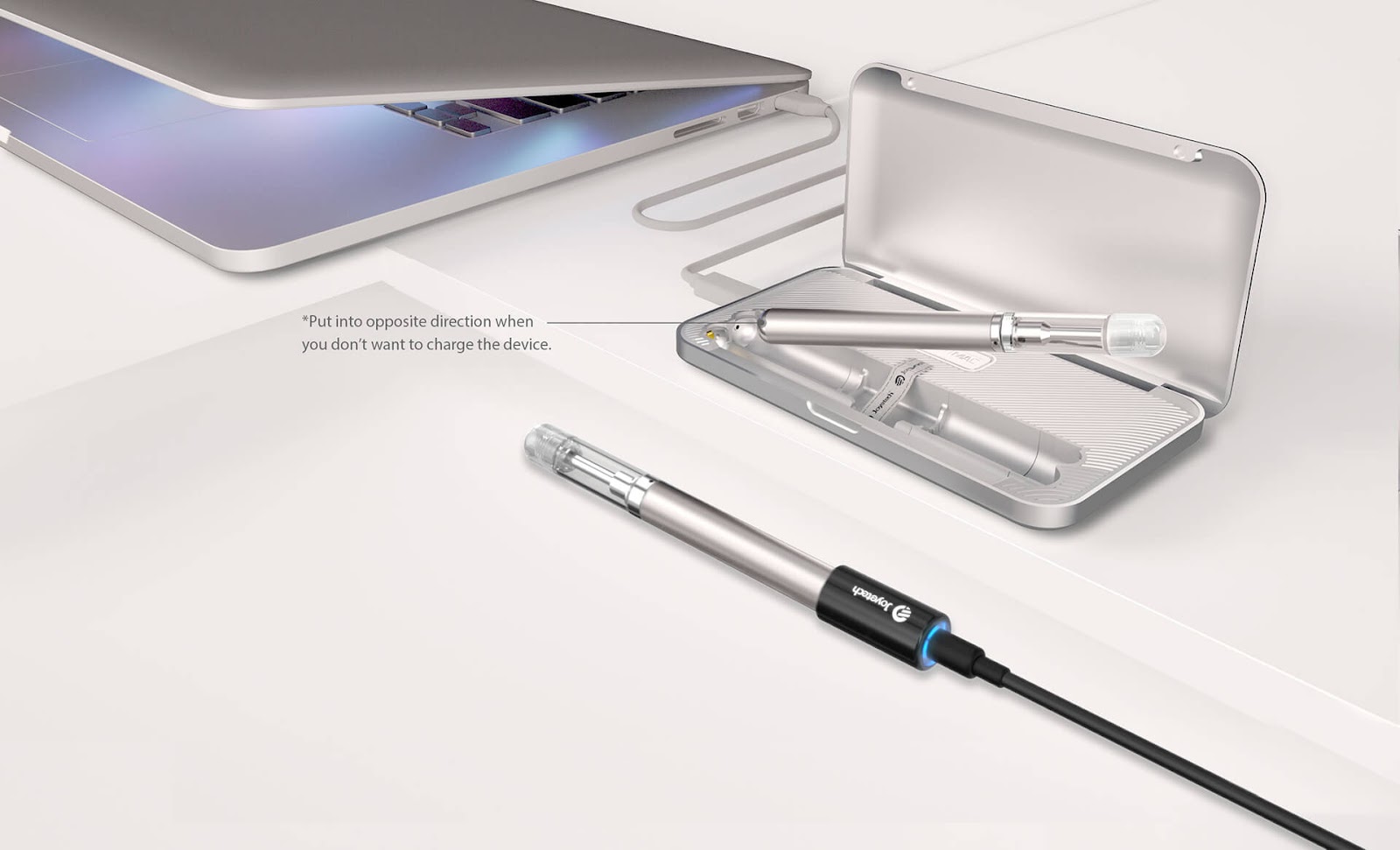 - Jedním z nich je vložit vape pero do PCC (Portable Charging Case) ve správném směru nabíjení;
