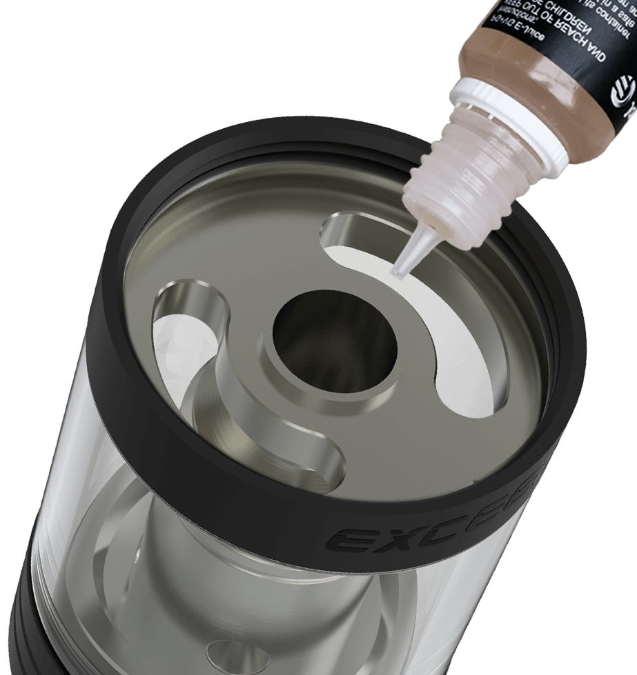 Odšroubujte horní víčko a vstříkněte e-liquid přímo do otvorů z obou stran.