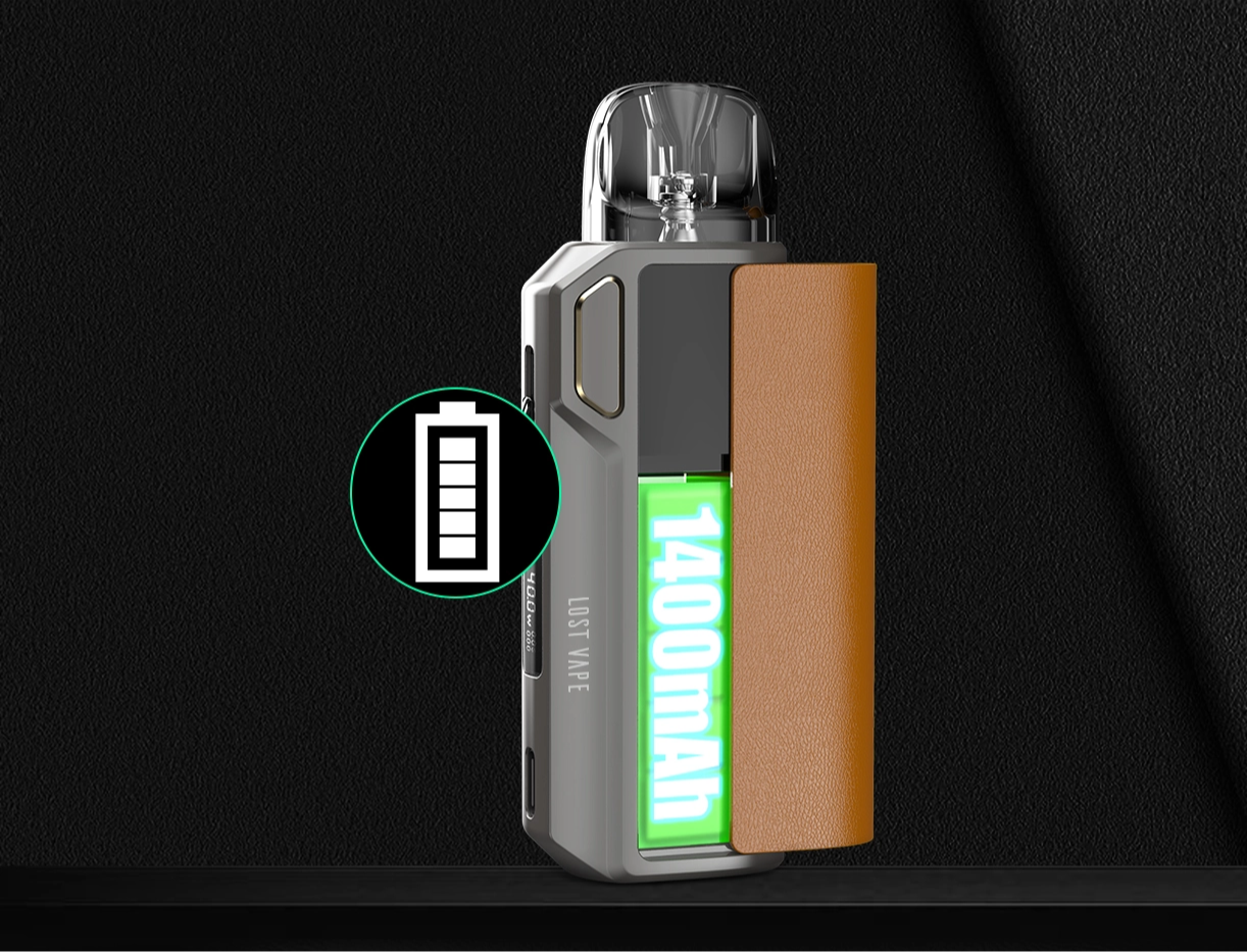 Elektronická cigareta Lost Vape Thelema Elite 40 obsahuje vestavěnou 1400mAh baterii s rozsahem výkonu 5W - 40W, díky čemuž je ideální pro vaping s omezeným přímým přístupem do plic (RDL). Není určeno pro náplně obsahující nikotin!